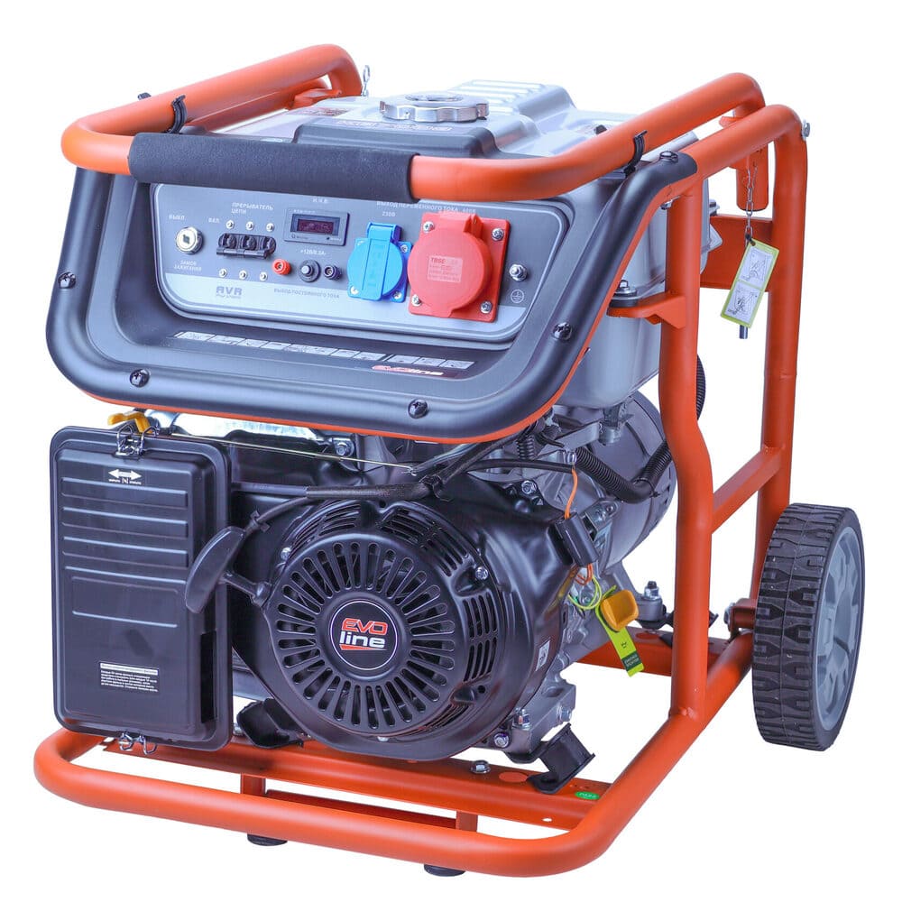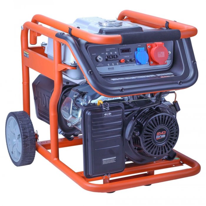 Электрогенератор EVOline KB 7003 – бензиновый трехфазный генератор с максимальной мощностью 6,5 кВА. Силовым агрегатом данной модели является четырехтактный двигатель ZONGSHEN GB 420. Рама выполнена из высококачественной стали, которая служит не только для защиты двигателя, но и для удобной транспортировки электростанции. Объем топливного бака составляет 32 литра, что дает примерно 11 часов непрерывной работы в зависимости от нагрузки. Уровень шума при работе генератора составляет 76,5 дБ. Данная модель идеально подходит как для дома, так и для малого или среднего бизнеса. Оснащена транспортировочным комплектом с колесами, счетчиком мото-часов, электростартером и 2-мя розетками, имеет размер (700х530х590 мм) и вес (86 кг). Гарантия составляет 2 года.