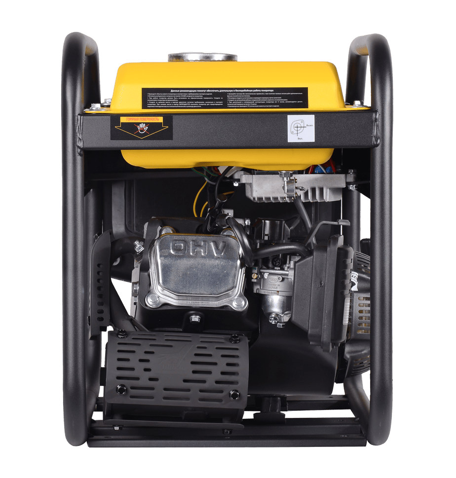 В основе генератора лежит четырехтактный бензиновый двигатель, работающий на неэтилированном бензине АИ-92. Агрегат выдает максимальную мощность 3500 Вт и номинальную мощность 3300 Вт, чего достаточно для питания большинства устройств на даче, в мастерской или во время выезда на природу. Ёмкость топливного бака составляет 7 л, что обеспечивает продолжительное время работы без частых дозаправок.